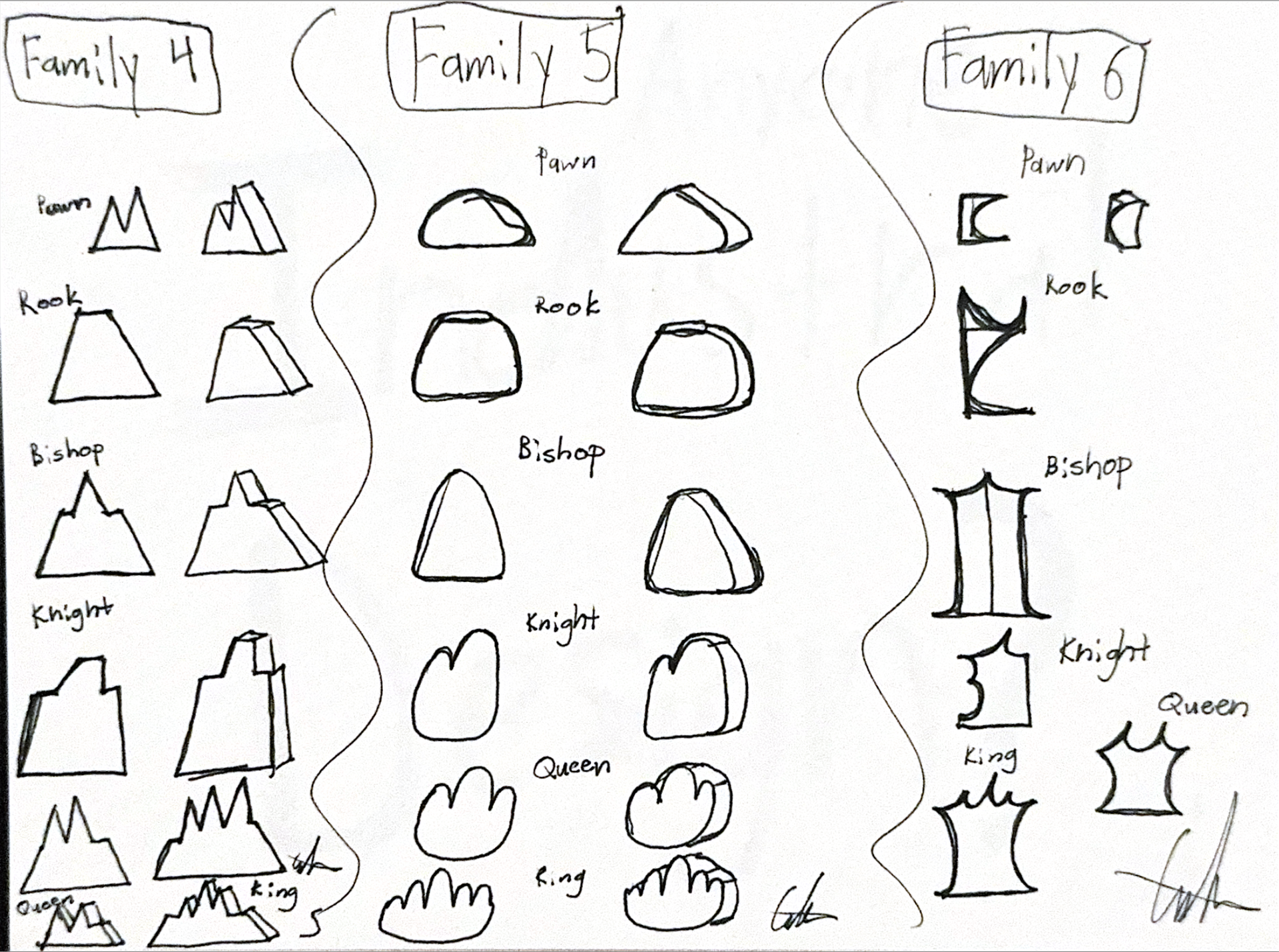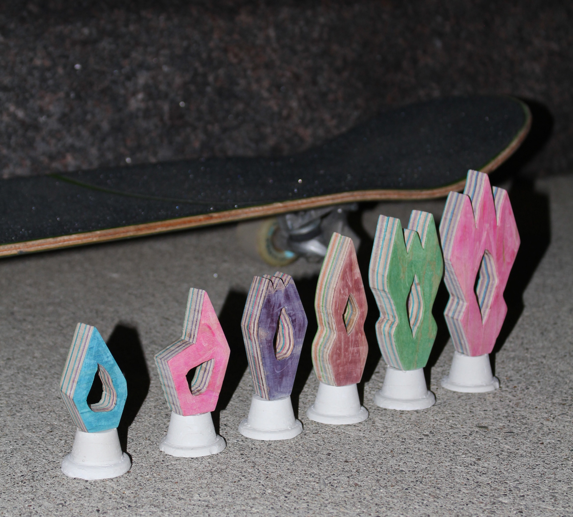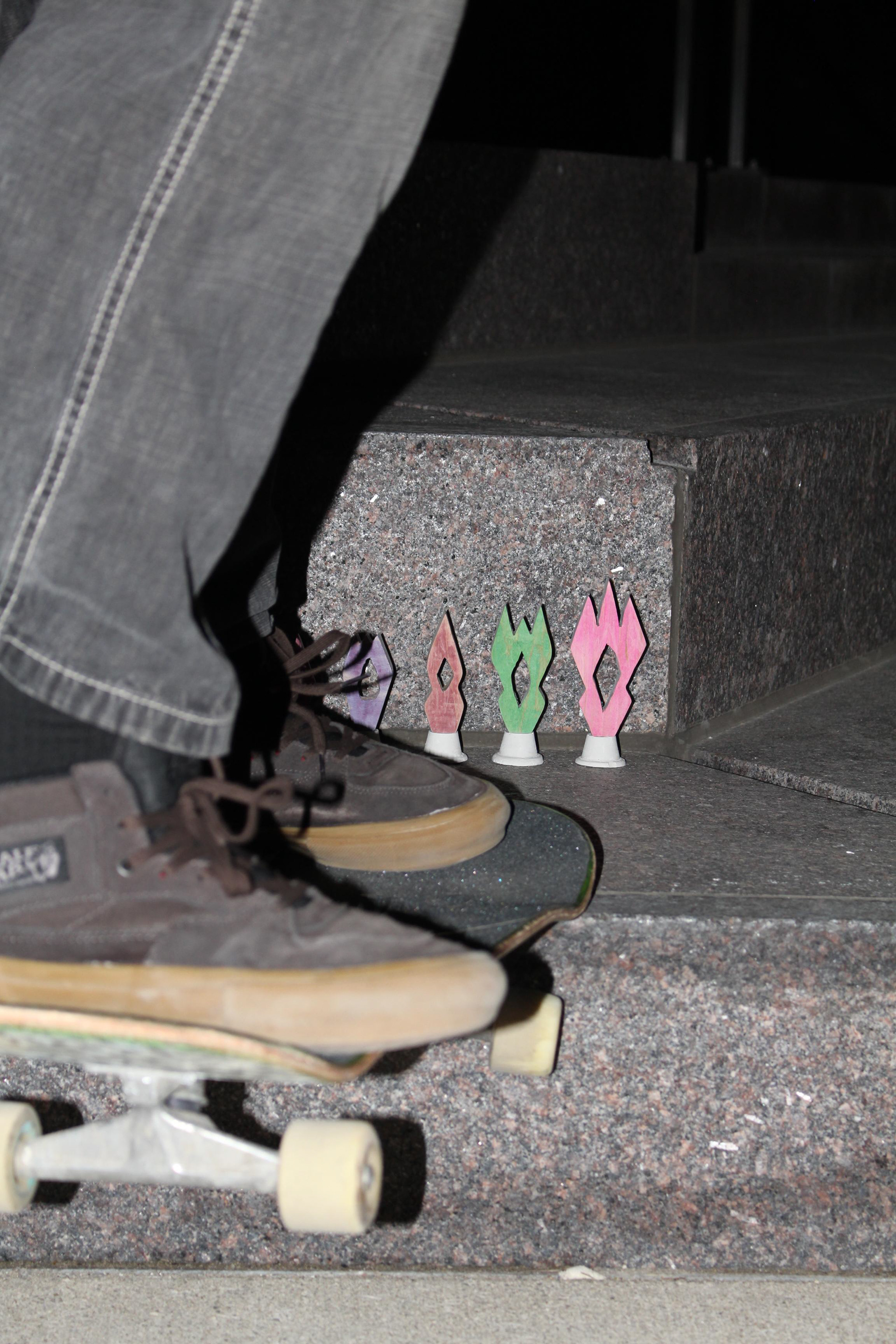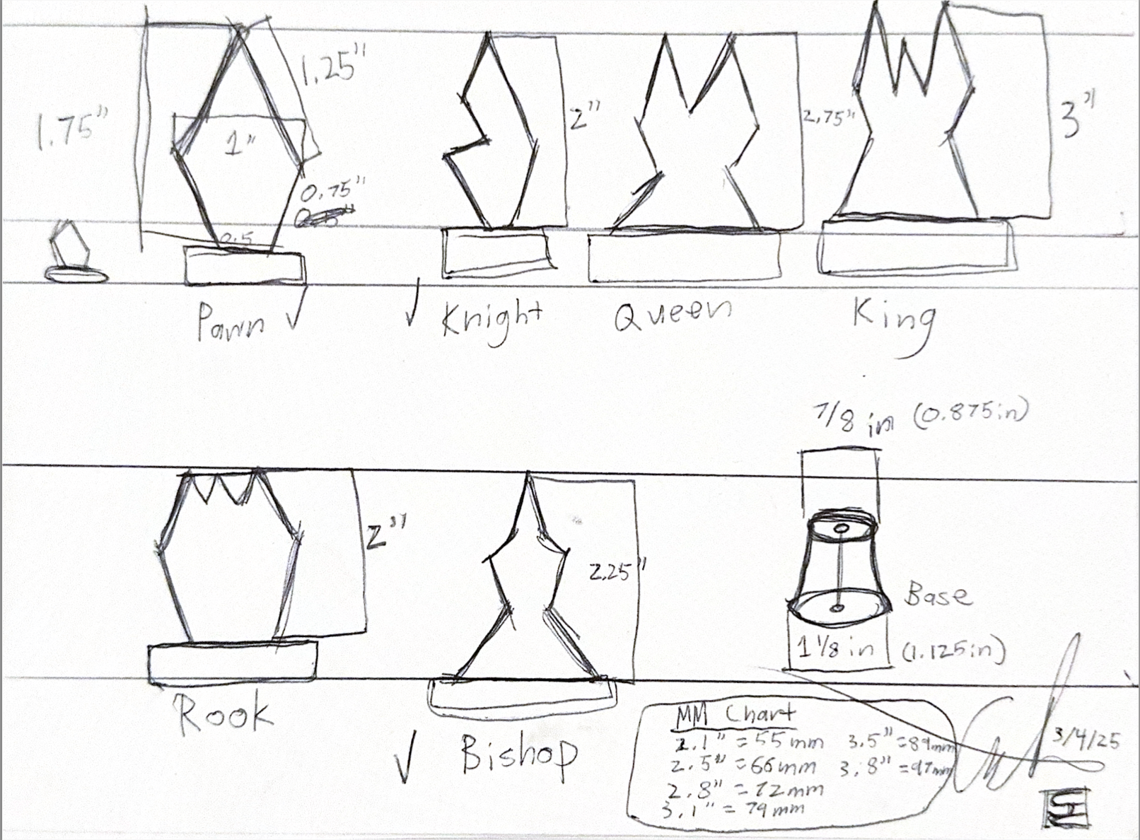 For designing the shapes of the pieces, I took inspiration from skateboard brands, logos, and other elements of skateboarding. For example, the shape of the knight closely reflects the shape of a ramp at my hometown skatepark in Charleston, WV.
